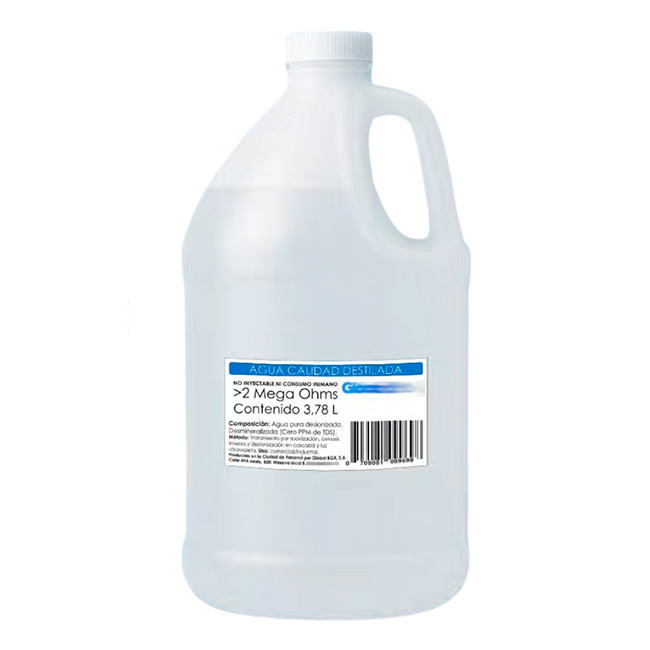 Agua Calidad Destilada 3.78L Tipo Desionizada (Alta Pureza para Laboratorios, Salud y Cosmética)