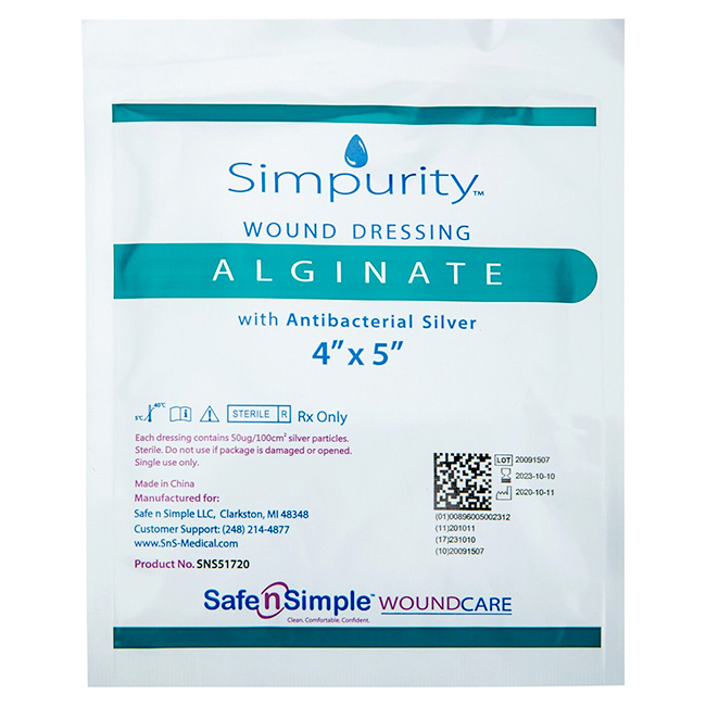 El Simpurity Alginate con Plata Antibacteriana 4″x5″ es un apósito de alto rendimiento que combina los beneficios de los alginatos con el poder antimicrobiano de la plata iónica. Este producto de la línea Safe n Simple® está diseñado para absorber grandes cantidades de exudado mientras protege el lecho de la herida contra bacterias que pueden complicar la cicatrización. La liberación controlada de plata ayuda a prevenir infecciones sin causar irritación o toxicidad en el tejido sano.