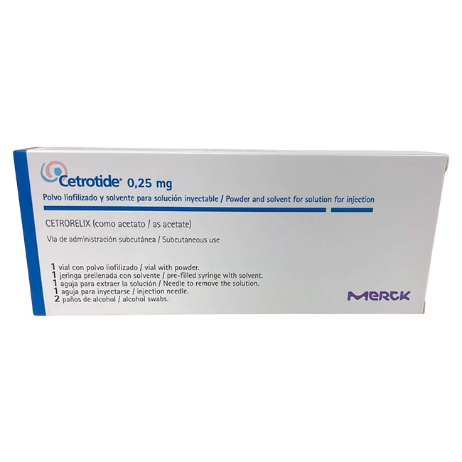 Cetrotide® (acetato de cetrorelix) es un antagonista de la hormona liberadora de gonadotropinas (GnRH) utilizado en tratamientos de estimulación ovárica controlada durante técnicas de reproducción asistida (TRA), como la fertilización in vitro (FIV). Su función principal es prevenir la ovulación prematura al bloquear de manera inmediata la liberación de la hormona luteinizante (LH), permitiendo una mejor sincronización del ciclo y una mayor tasa de éxito en la recolección de ovocitos maduros.