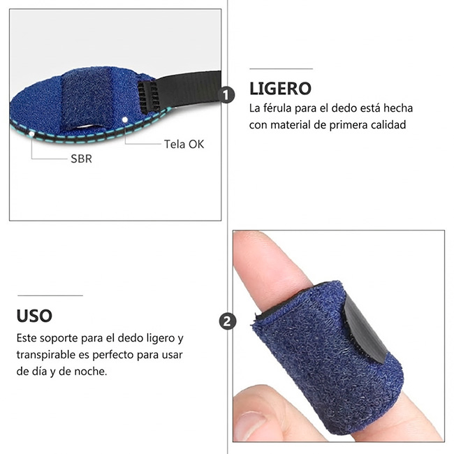 Gracias a su sistema de ajuste con velcro, es fácil de colocar y retirar, permitiendo una compresión adecuada según la necesidad del usuario. Está indicada para el dedo índice, medio, anular, meñique o pulgar, siendo una solución práctica tanto para el uso diario como para períodos prolongados de rehabilitación.