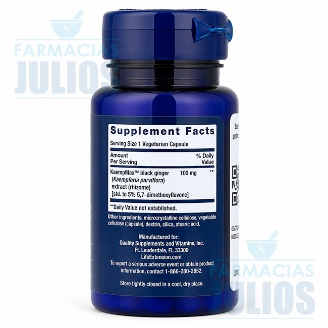 Su ingrediente principal es KaempMax™, extracto estandarizado de jengibre negro (Kaempferia parviflora), utilizado tradicionalmente en suplementos orientados al rendimiento masculino. Esta fórmula también busca favorecer la producción natural de óxido nítrico, asociado al flujo sanguíneo saludable.