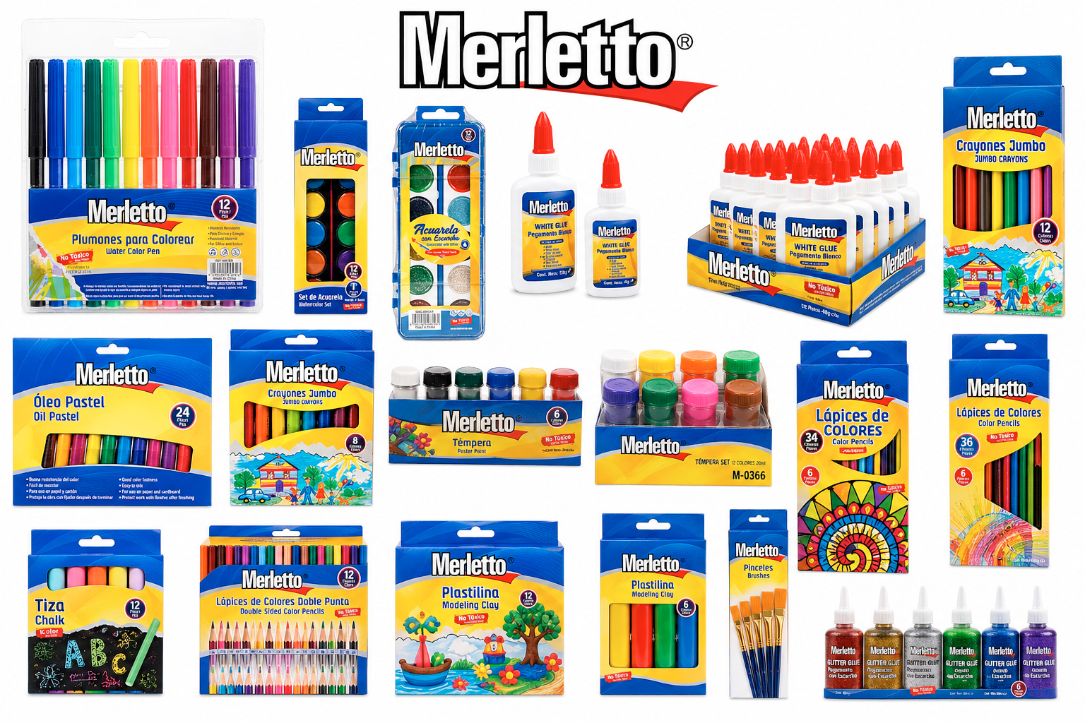Merletto ofrece una completa línea de útiles escolares y materiales artísticos pensados para estimular la creatividad y apoyar el aprendizaje diario. Sus productos son ideales para escuelas, colegios, universidades, oficinas y hogares.