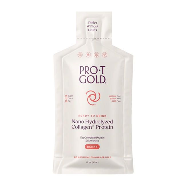 ProT GOLD Sugar Free Liquid Protein Shot viene en un paquete de 24 shots de 1 onza cada uno, con sabor a berry, ideal para quienes buscan un suplemento proteico confiable y de alta calidad que apoye la salud y el bienestar.