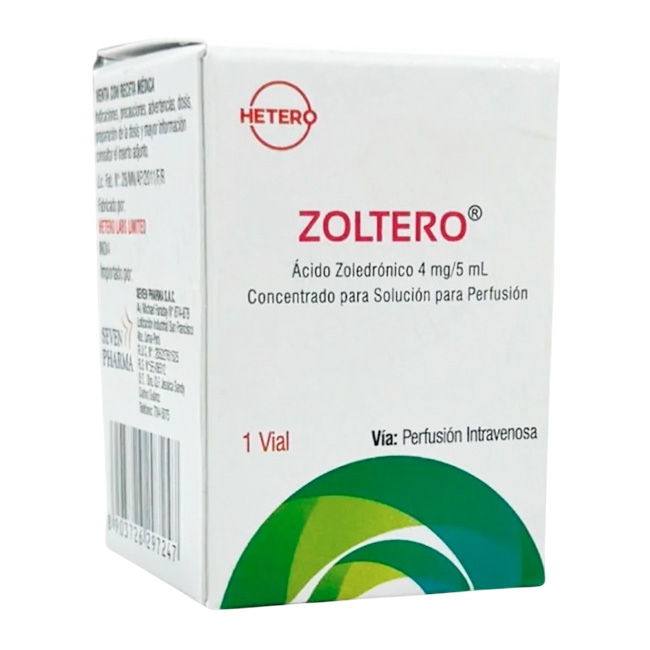 Fabricado por Hetero Labs Limited, Zoltero garantiza altos estándares de calidad farmacéutica y seguridad. Debe ser administrado únicamente por profesionales de la salud, mediante perfusión intravenosa lenta, y con la debida hidratación del paciente antes y después del procedimiento. Es un medicamento de uso hospitalario o especializado que contribuye significativamente al manejo integral de las enfermedades óseas.